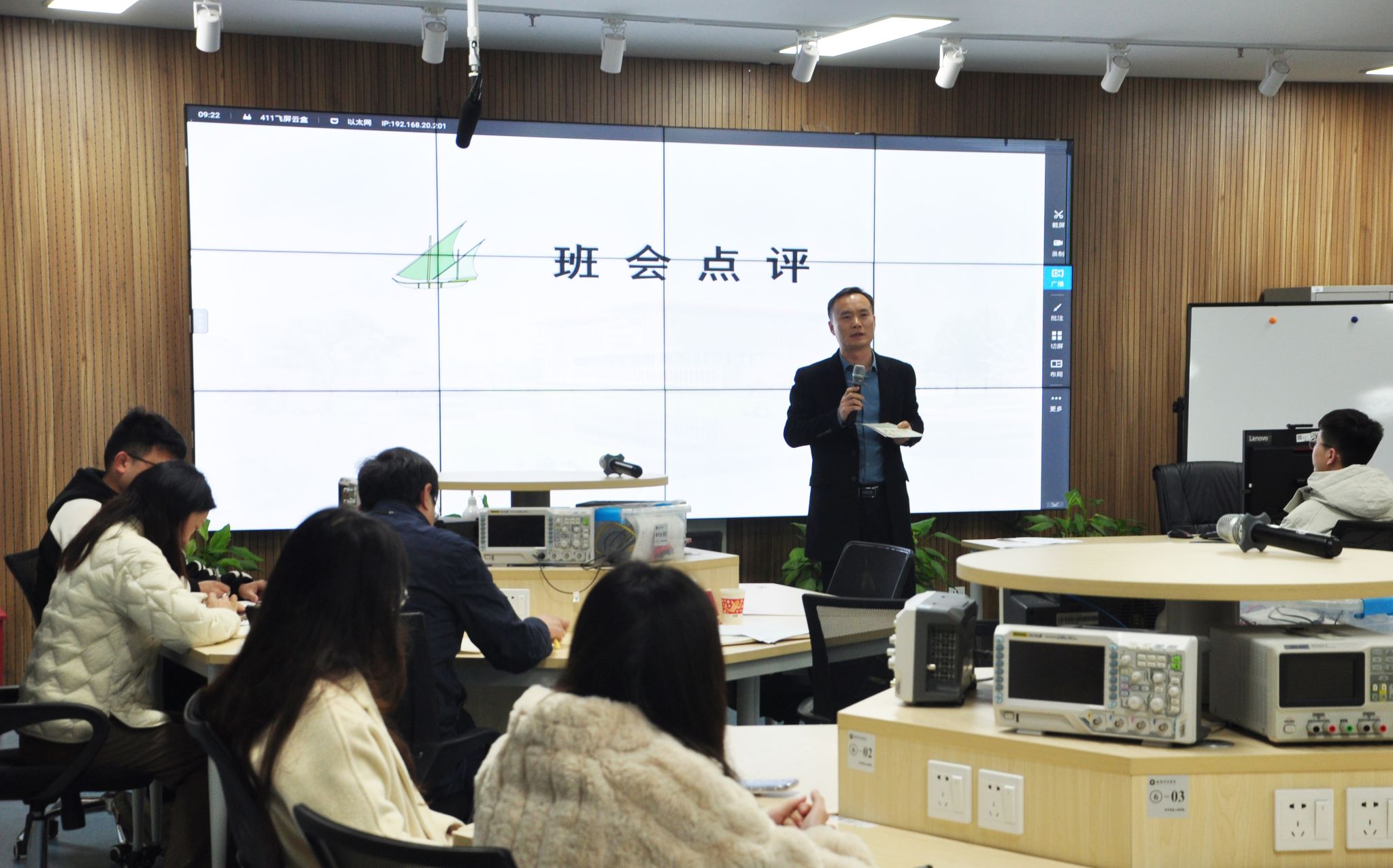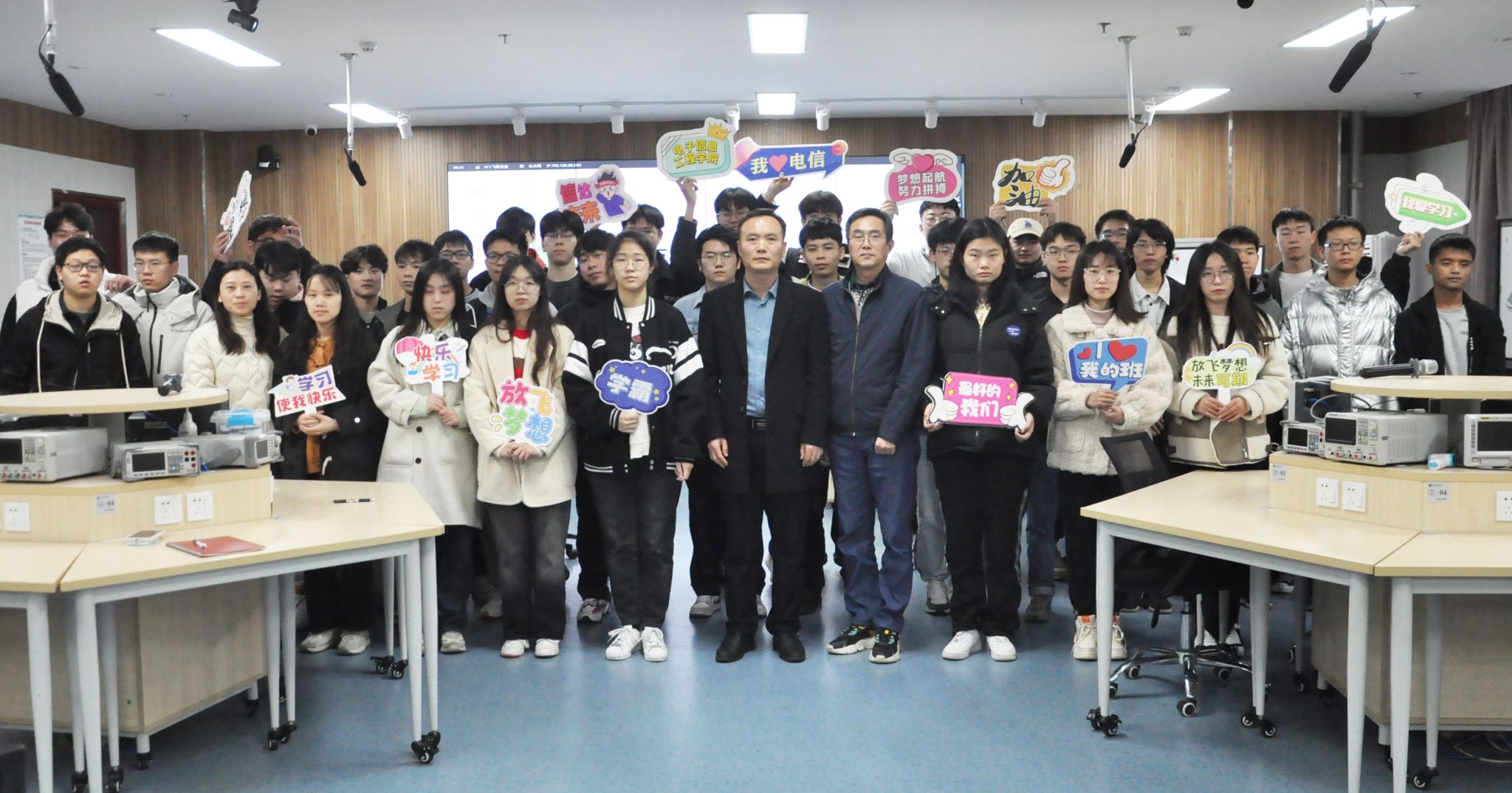 3月23日上午,6776永利集团2021级电子科技与技术(1)班在科技楼4号楼电子信息智慧实验室召开了以“行而不辍,履践致远”为主题的班会。校党委常委、纪委书记王延光,学院党委书记王昭诚,班主任张玲以及学院全体辅导员出席了此次班会。