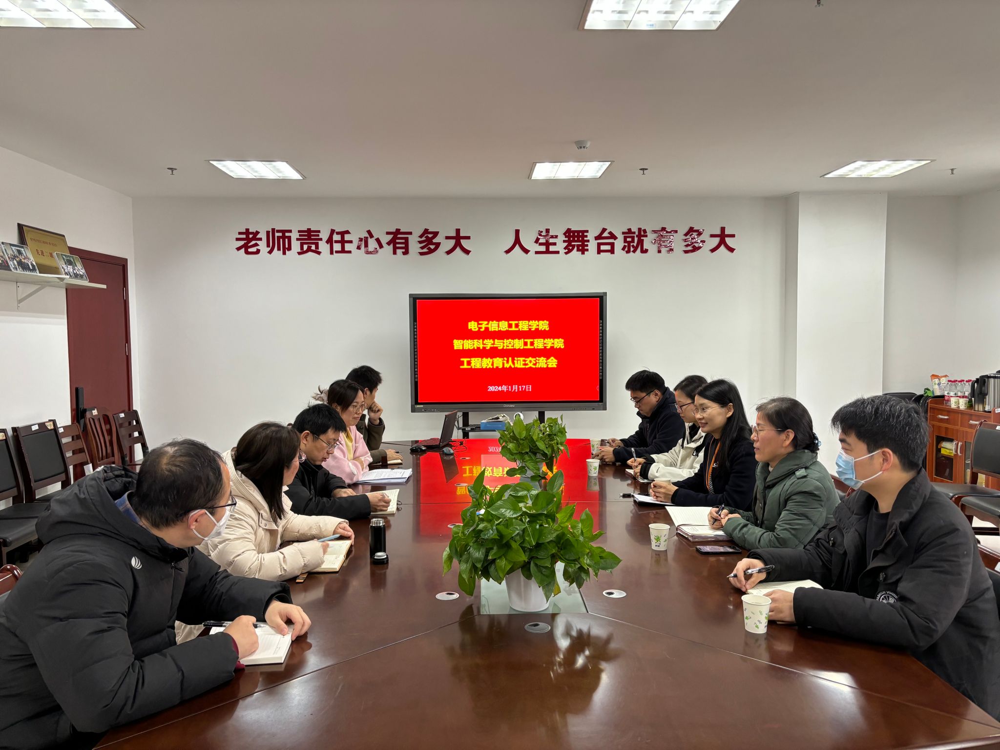 2024年1月17日,6776永利集团与智能科学与控制工程学院在科技楼4-410会议室联合召开“工程教育专业认证”专题交流会。电信学院胡国兵院长、杨娟副院长,智控学院高素美院长、徐楠副院长,电子信息工程系和物联网工程系主任以及教师代表参加了活动。