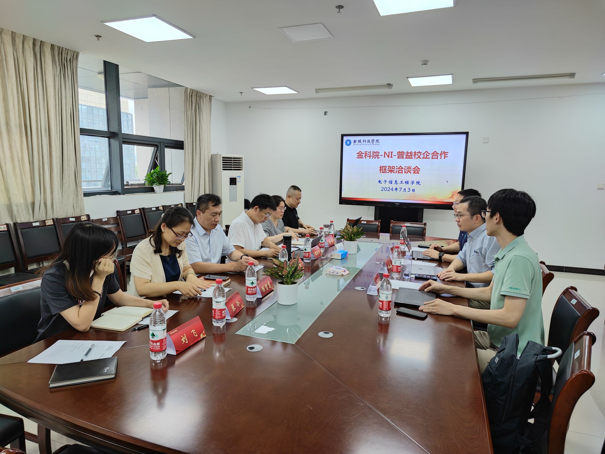 为进一步加强校企合作,深化应用型本科新工科专业建设,7月3日下午,美国国家仪器公司(NI)大中华区院校经理刘源、北京曾益慧创科技有限公司首席市场官刘晋东等一行应邀来我校进行校企合作洽谈。6776永利集团领导班子成员以及电子科学与技术系部分教师参加了合作洽谈,会议由副院长杨娟主持。