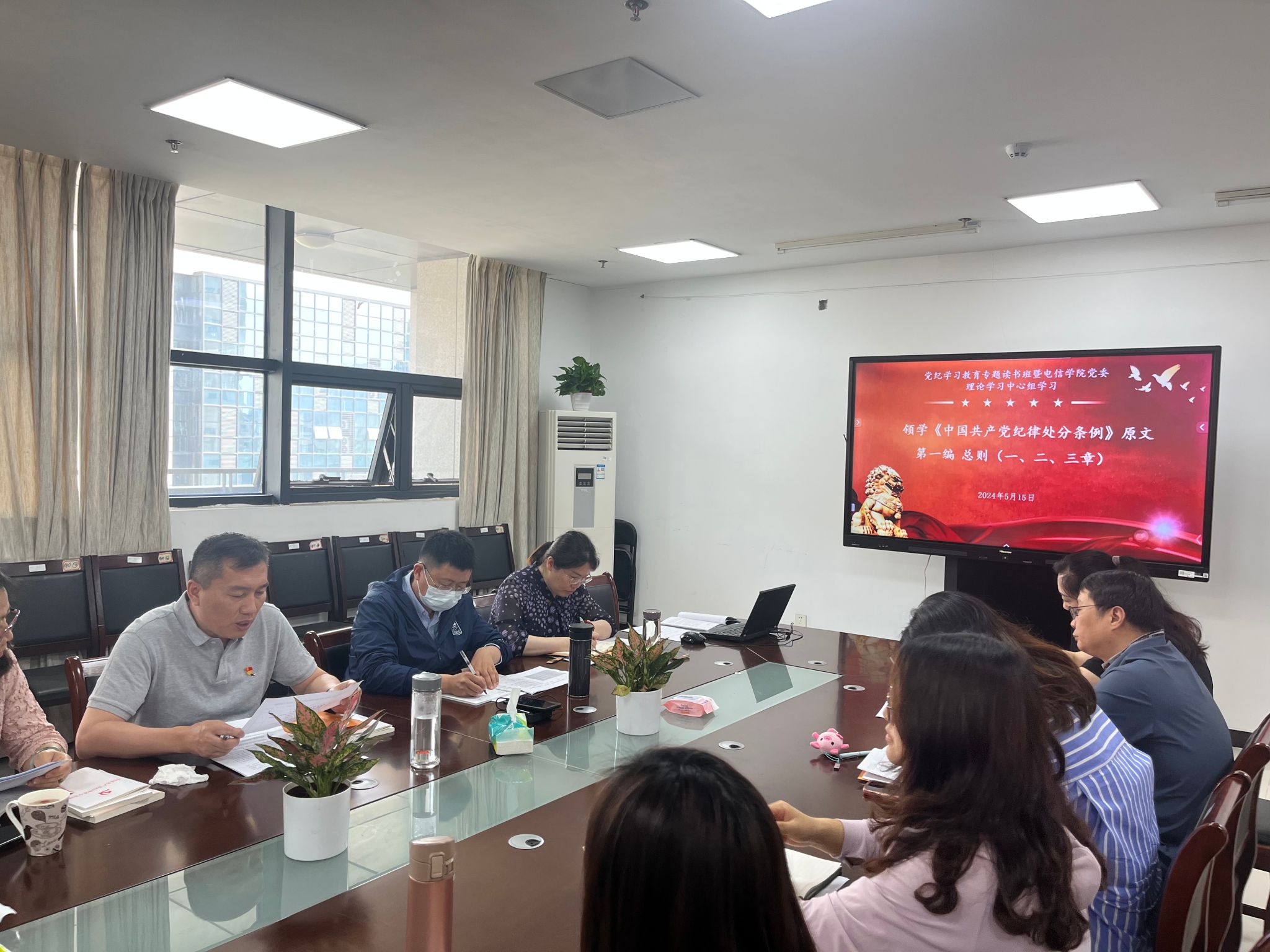 在党纪学习教育专题读书班部分,学院党委副书记陈智慧领学了习近平在二十届中央纪委三次会议上发表的重要讲话精神。围绕《中国共产党纪律处分条例》第一编总则,徐志国、陈智慧分享了各自的学习体会。