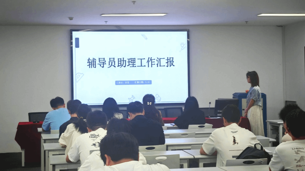 本次活动分为两大部分,首先进行的是2024级辅导员助理考核答辩。8名现任辅导员助理依次上台,借助精心制作的PPT,围绕思想政治引领、班级事务管理、学风建设、心理健康关怀、突发事件处理等工作内容,结合具体案例,生动展示了过去一学年的工作成果与个人成长。