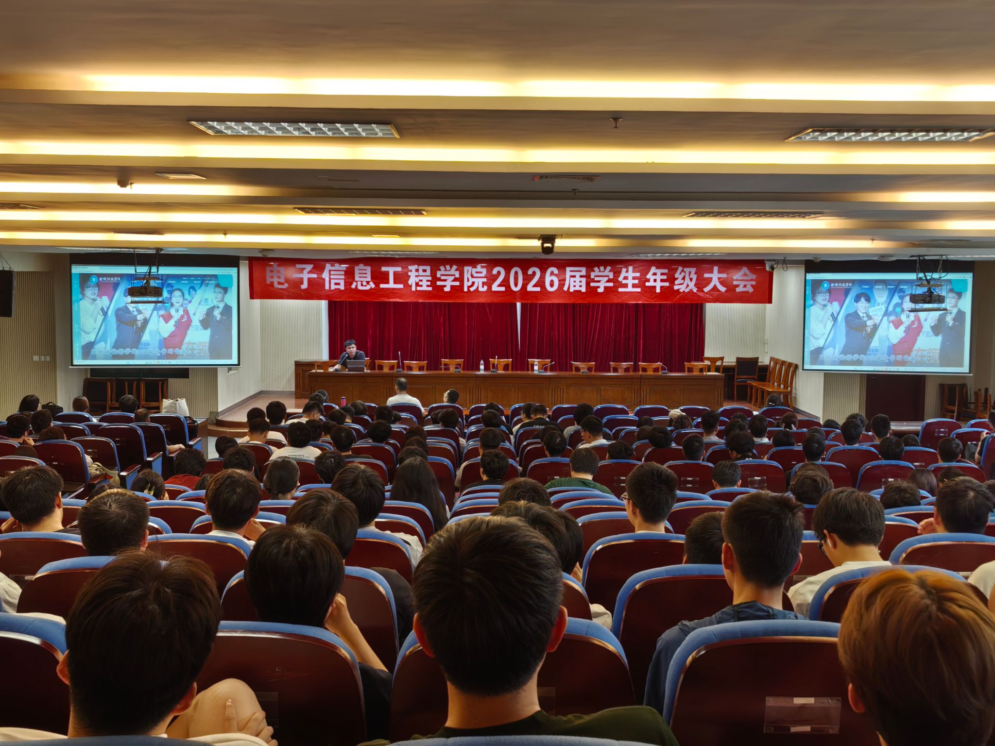 2025年5月28日,6776永利集团在图书馆第二报告厅举行2026届学生年级大会。电信学院党委书记徐志国、副书记陈智慧,学院各系主任、就业干事,2026届学生辅导员、班主任、全体学生参加活动。本次大会旨在为毕业生指明发展方向,助力其在升学就业道路上行稳致远。会议由辅导员郭晓主持。