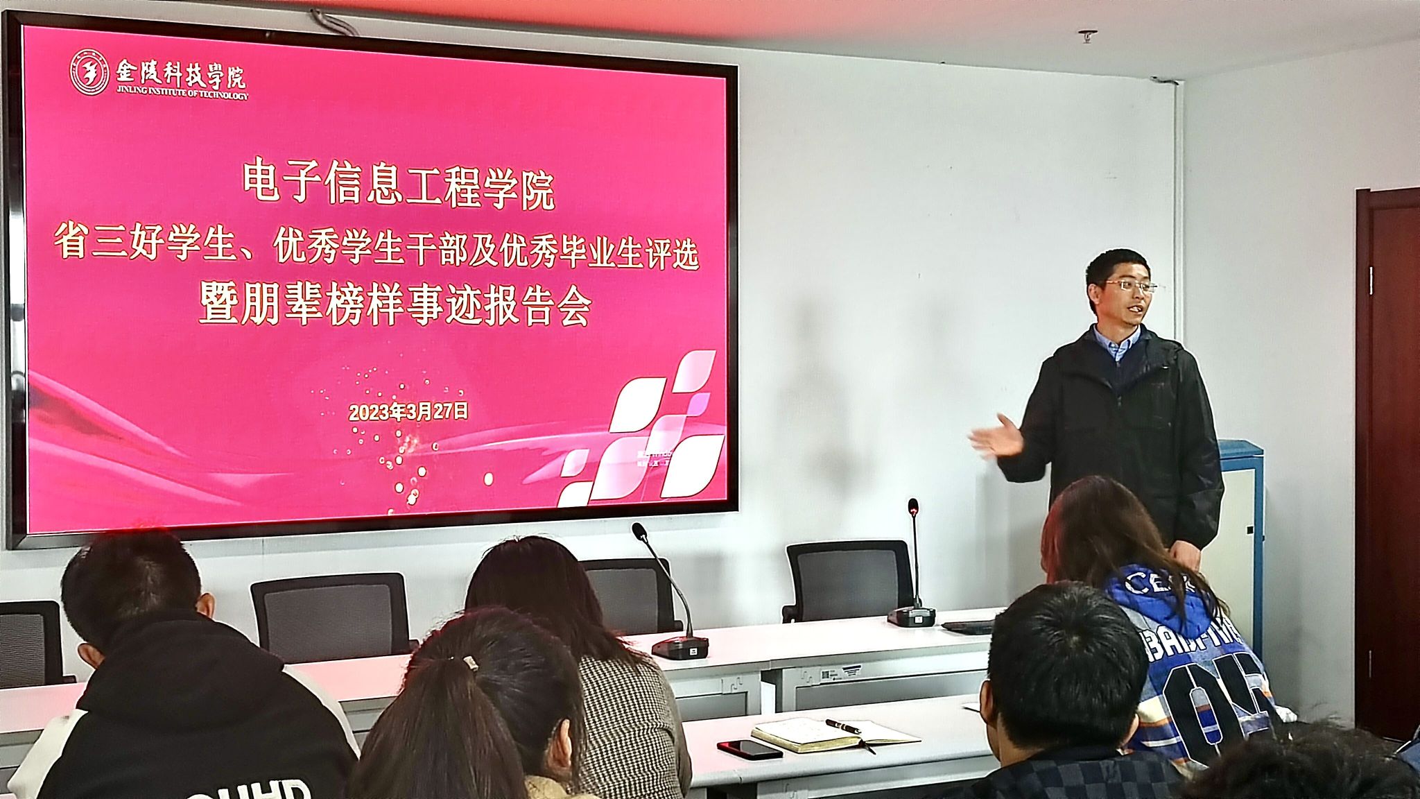 3月27日,6776永利集团于科技楼4号楼304-2召开省三好学生、优秀学生干部、优秀毕业生评选暨朋辈榜样事迹报告会。学院党委副书记吴有龙,学工办副主任叶晴,辅导员殷燕、郭晓、征文维出席了活动,9名参选学生及80名学生代表参加了活动。活动由殷燕主持。