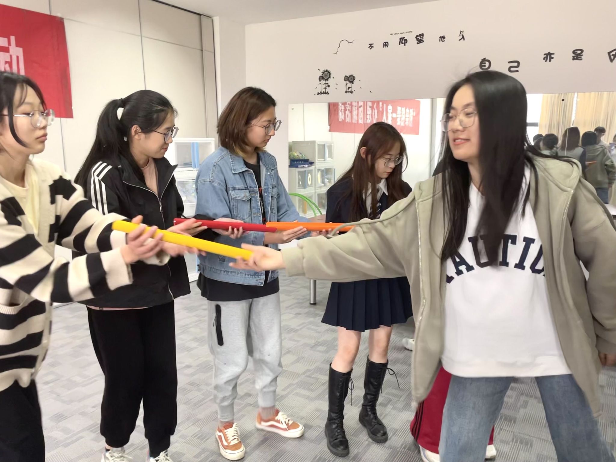 在沈洁的带领下,本次心理团辅共开展了“我建我家”“球行千里”“一圈到底”“蒙眼正方形”4个心理趣味活动。在“我建我家”环节,各宿舍成员共同为宿舍取名并设计舍标。“汤臣一品”“米奇妙妙屋”“魔仙堡”等新奇创意的舍名彰显青春朝气,饱含了学生对宿舍友谊的祝福。“球行千里”“一圈到底”“蒙眼正方形”等游戏环节吸引学生参与互动,考验了宿舍之间的默契程度,培养了学生的团队协作精神。