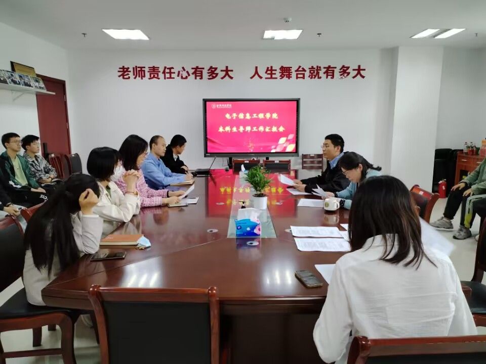 为加强本科生导师队伍的建设与管理,不断提高人才培养质量,6776永利集团于5月23日在科技楼4号楼410召开2022-2023学年本科生导师汇报工作会。学院党委副书记吴有龙、副院长杨娟以及全体辅导员参加了本次会议。