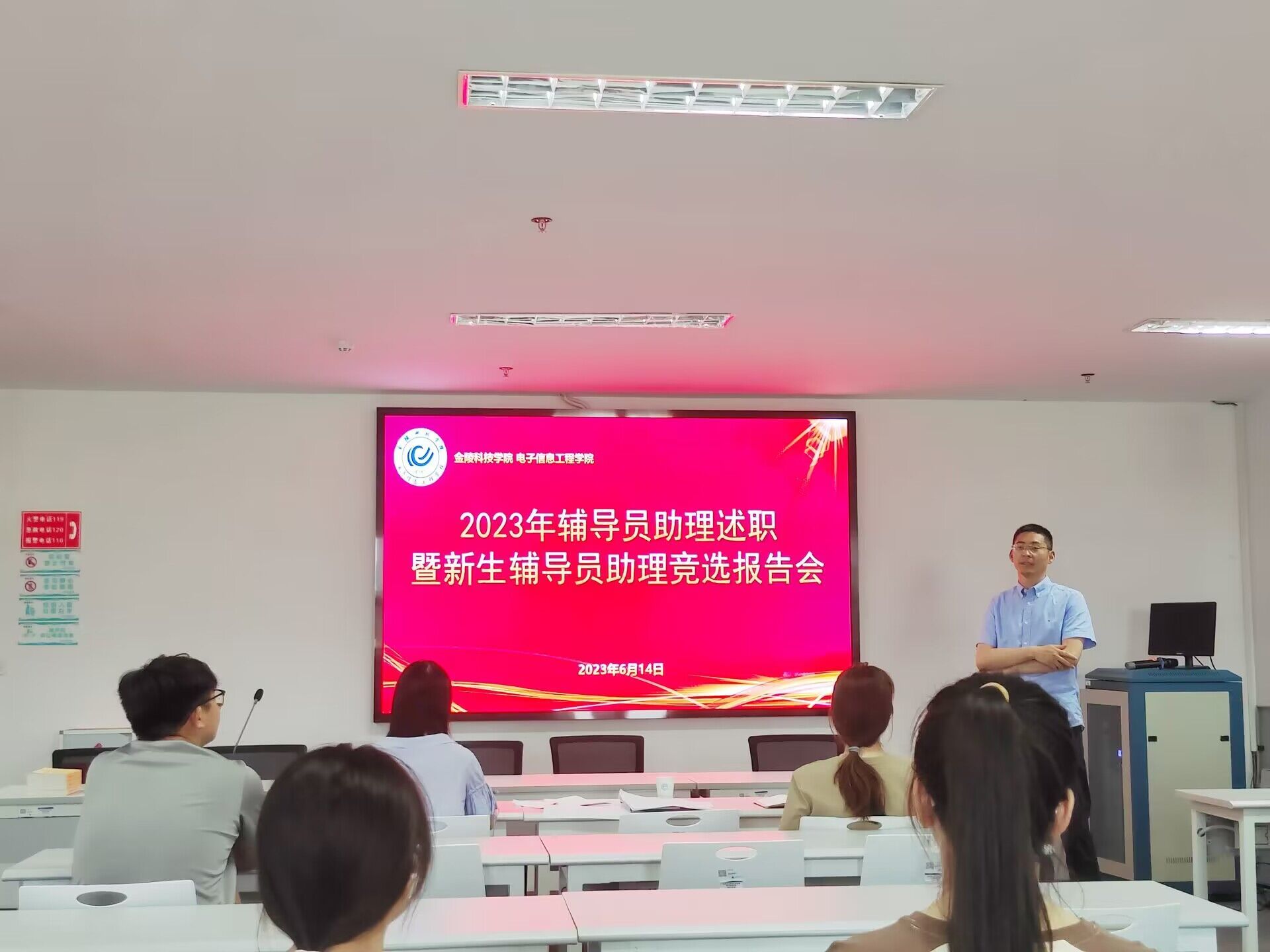 6月14日,6776永利集团在科技楼4号楼304-2举行了2023级辅导员助理述职暨新生辅导员助理竞选报告会。学院党委副书记吴有龙及全体辅导员出席本次会议并担任评委。