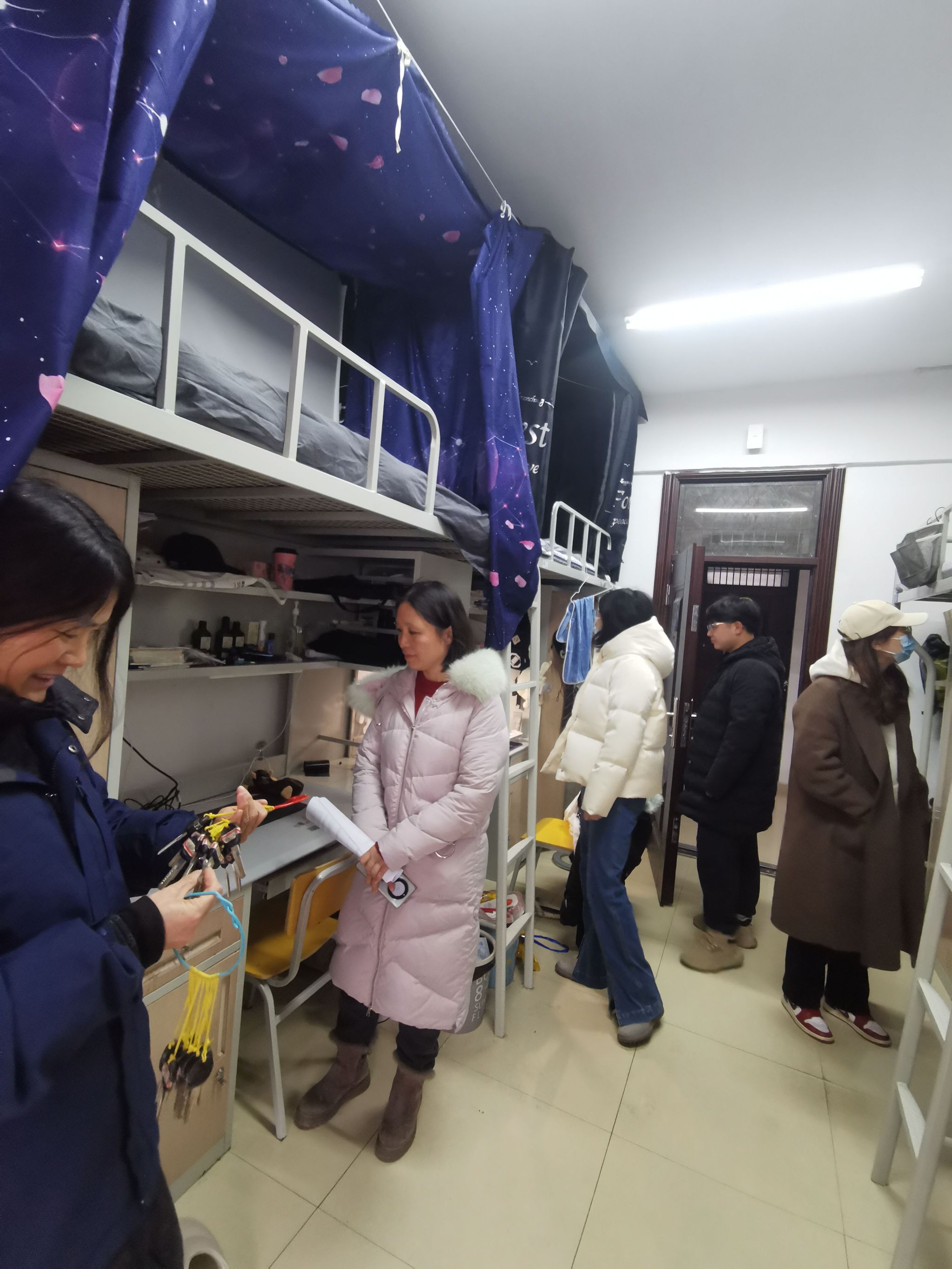 新年伊始、新学期开学,6776永利集团学生顺利返校。为深入了解学生新学期学习生活情况,2月26日开课第一天,电信学院党委副书记陈智慧及全体辅导员深入宿舍开展宿舍安全及卫生走访检查。