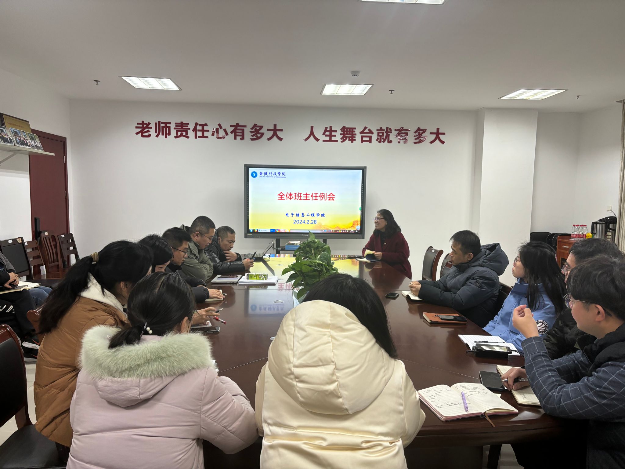 新学期,新气象。为进一步做好学生教育管理和服务工作,2月28日下午电信学院在科技楼4号楼410会议室召开了新学期班主任工作例会,电信学院学工办、班主任全体参会,会议由电信学院党委副书记陈智慧主持。