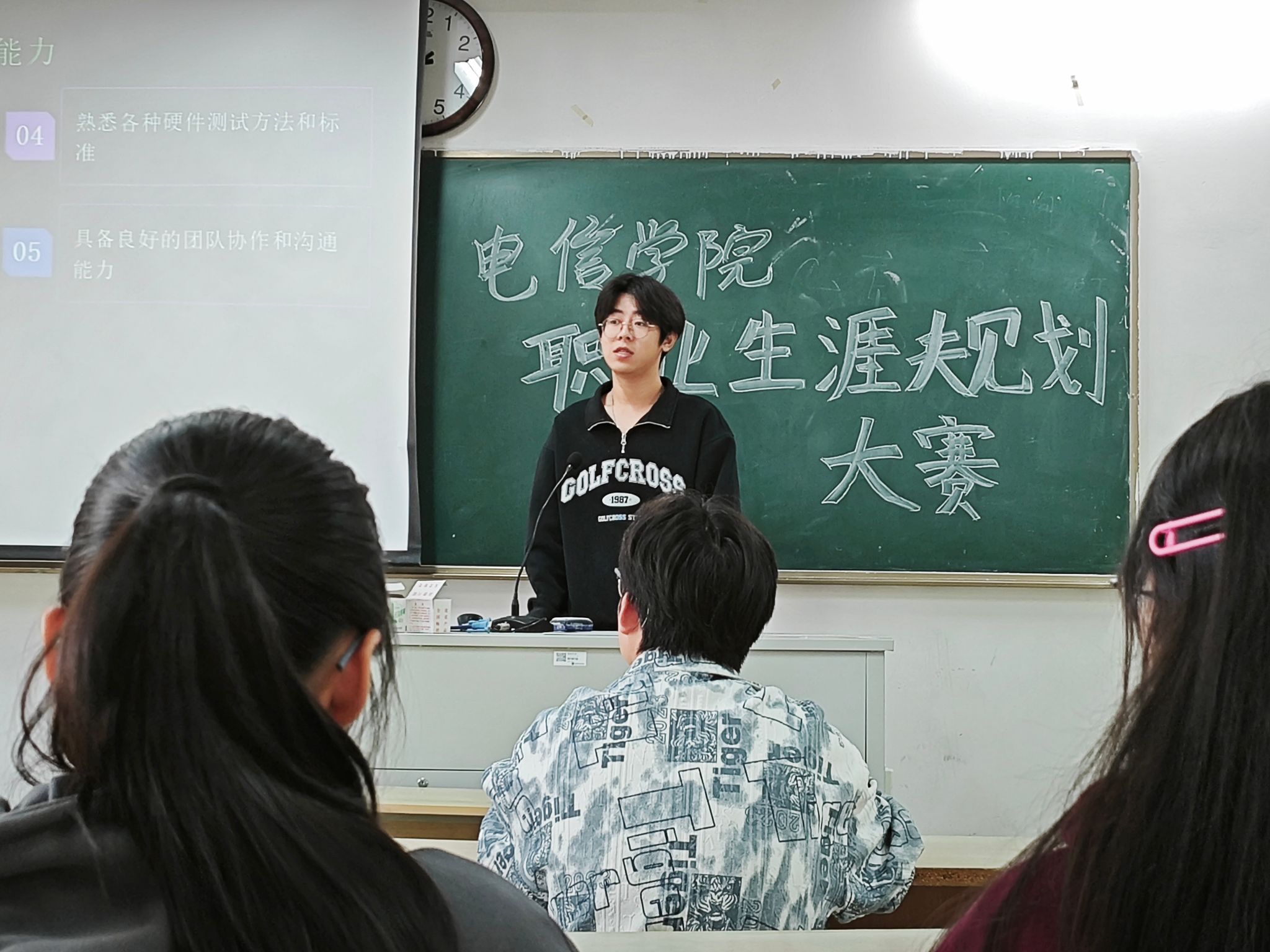 为进一步培养学院学生的职业生涯规划意识,引导大家明晰职业发展目标,电信学院于10月26日在1308教室举行大学生职业生涯规划大赛。经各班级初选推荐,共有12名同学进入到院级比赛。21信工(1)班徐李最终摘得本次比赛桂冠。