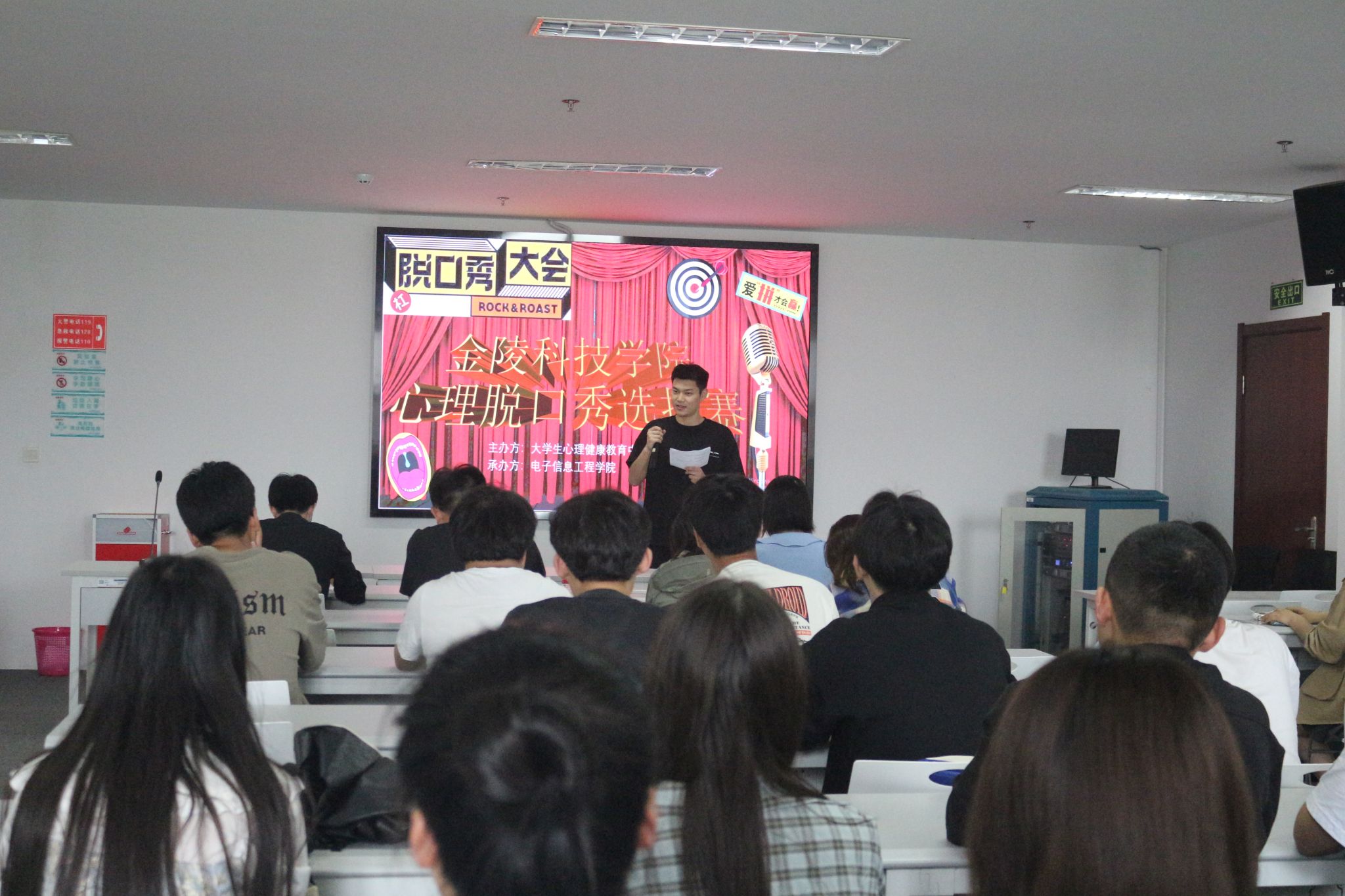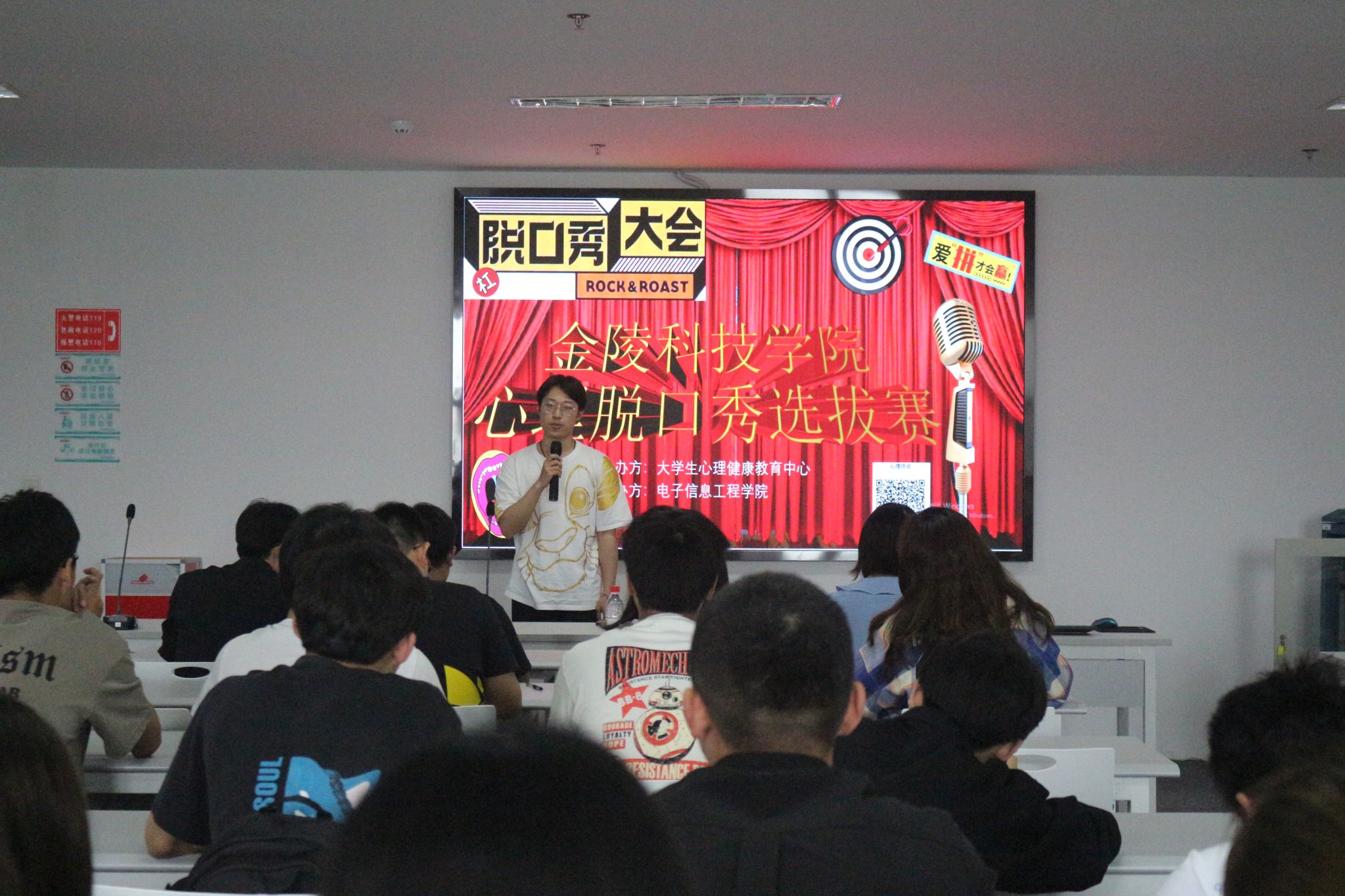 为积极引导学生构建健康和谐的身心秩序,以阳光心态开启筑梦新征程,4月19日,6776永利集团于科技楼4号楼304-2举办了“重塑心秩序,青春再启航”心理脱口秀选拔赛。学院辅导员叶晴、殷燕、郭晓、征文维出席活动并担任评委。