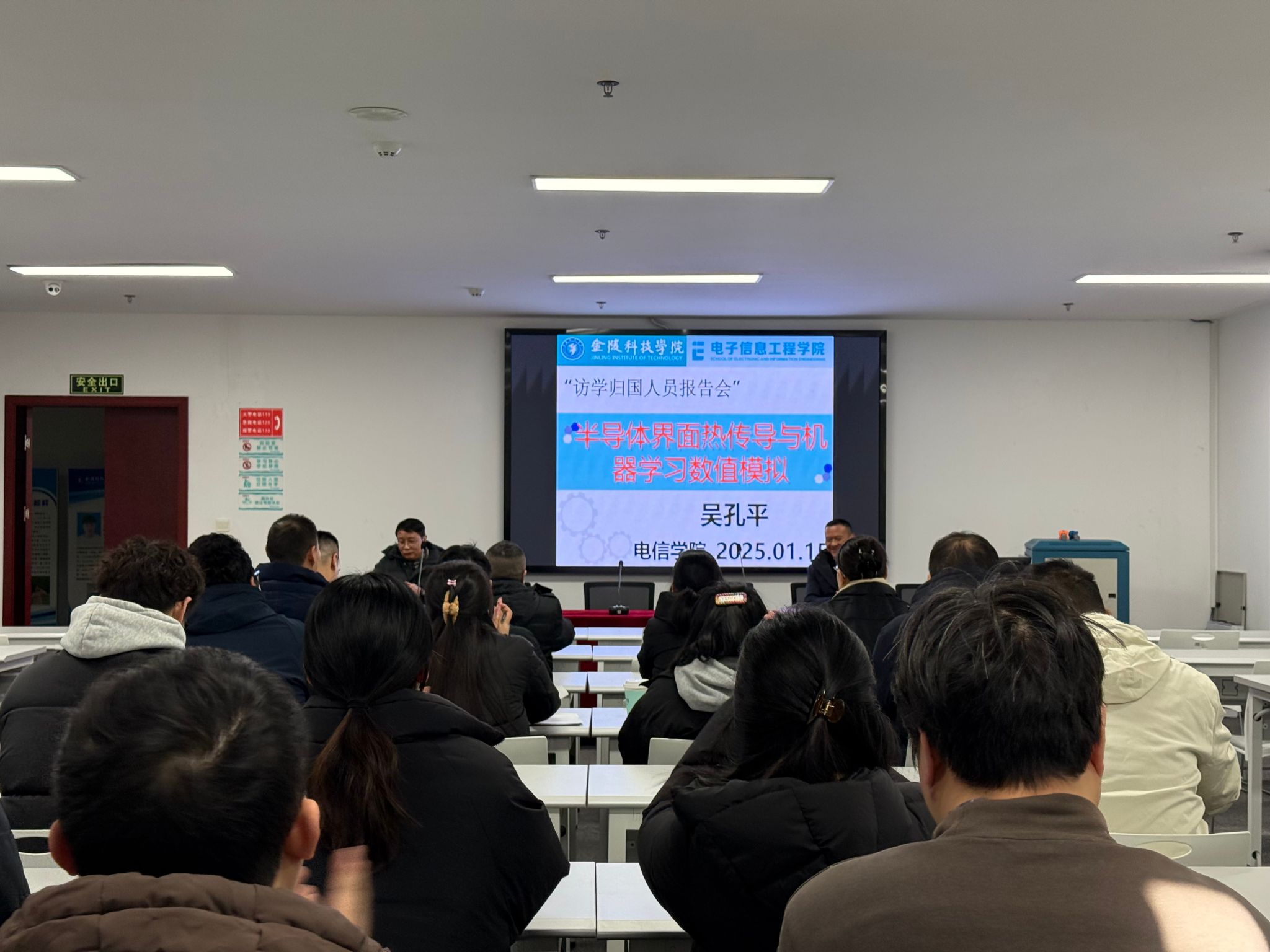 2025年1月15日上午10点,电信学院在科技楼4-304-2会议室成功举办了主题为“半导体界面热传导与机器学习数值模拟”的专题学术报告会。本次报告由学院访学归国的吴孔平教授为主讲,吸引了多位教师和研究生参加。