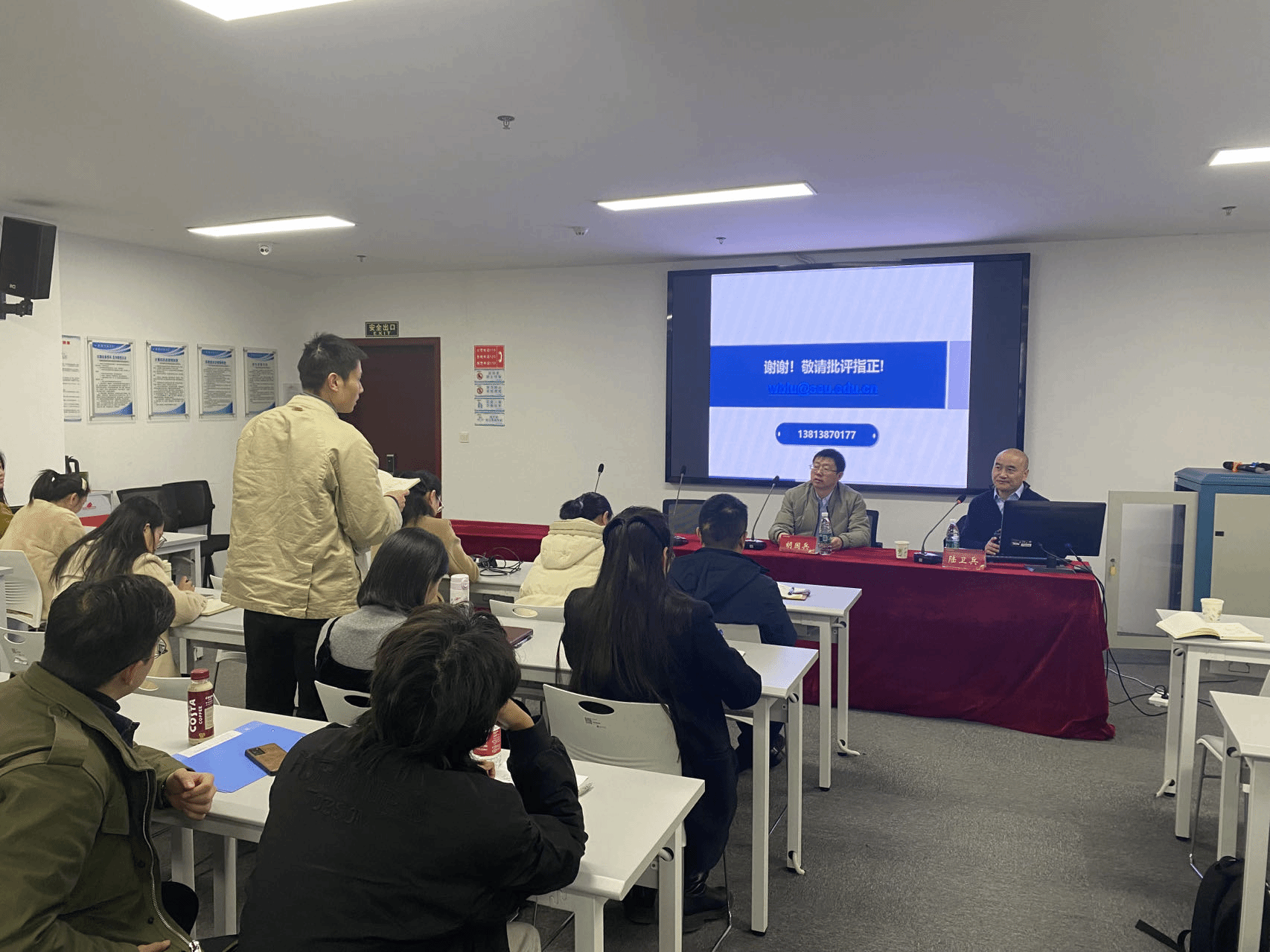 胡国兵首先对陆卫兵教授的到来表示热烈的欢迎,简要介绍了其研究领域和卓越的科研成果。随后,陆卫兵教授以《柔性射频技术研究进展》为题,呈现了一场内容充实、见解深刻的学术盛宴。陆卫兵教授从需求出发,深入分析了该领域广阔前景,介绍了所率领的课题组在柔性射频技术领域的最新研究成果及进展,对柔性射频技术的发展趋势和面临的挑战进行了详细地介绍和分析。在互动环节,学院教师和研究生就关心的学术问题与陆教授进行了热烈而深入的讨论交流。