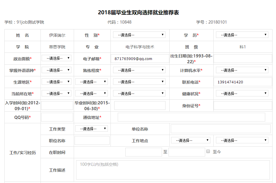 请按规范填写所有内容,带星号内容为必填内容;如果你有“工作/实习经历”,请你务必填写清楚。确认后点击“提交审核”,提交成功。如下图: