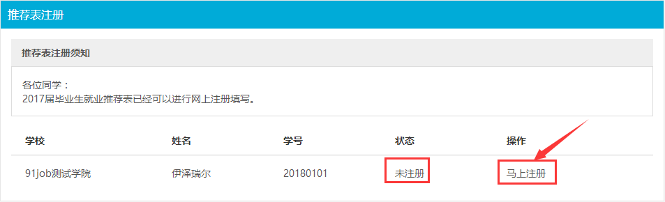 进入“推荐表注册”页面如下