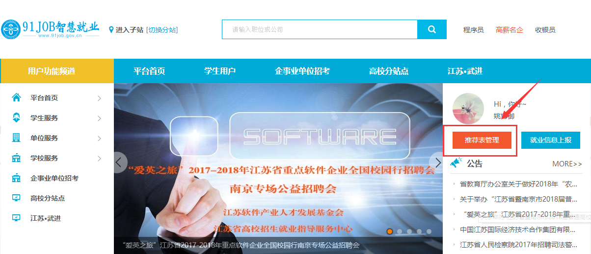 打开http://www.91job.gov.cn/进入江苏省高校毕业生就业网络联盟,如图:
