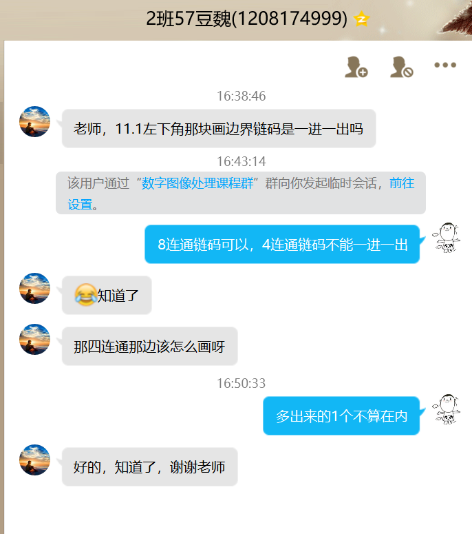 通过课前认真准备,课中详细讲解,课后积极反馈这三个环节,陈恺老师调动了学生学习数字图像处理课程的主观能动性,将线上教学开展得有声有色。