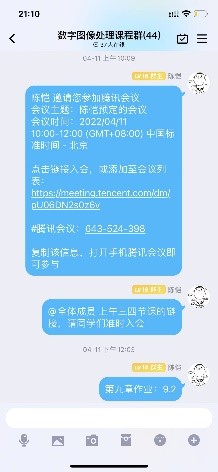 数字图像处理课程授课采用腾讯会议直播教学的方式,以语音讲解结合PPT展示为主。
