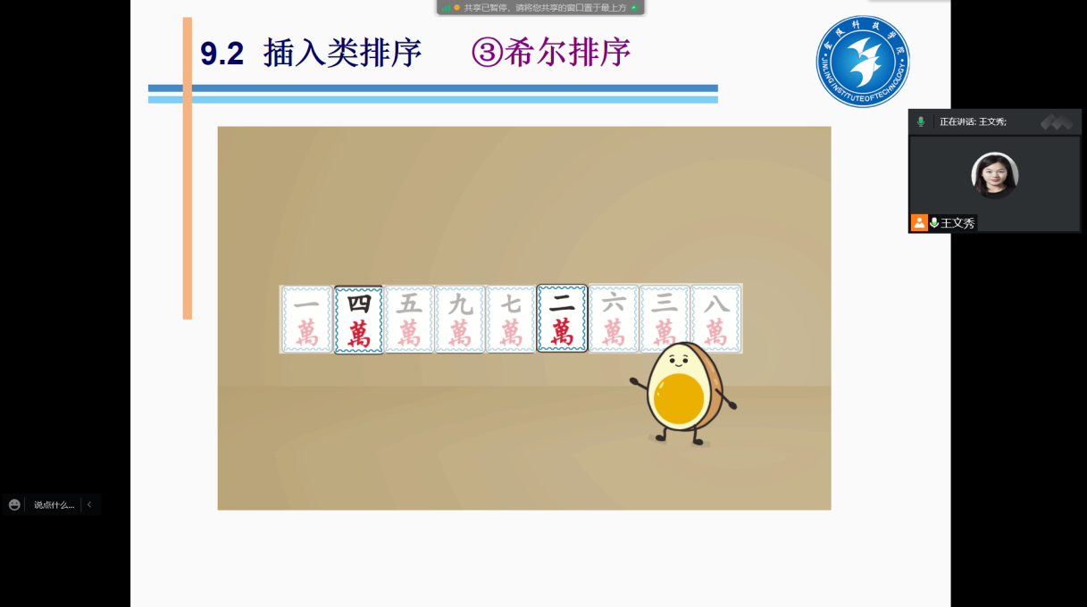 为了扩大同学们的知识范围,王老师除了要求同学们熟记代码完成作业外,还要求他们进行实际生活中的案例应用实践。如讲到插入类排序(希尔排序)这一节时,王老师形象的列举了四川麻将的实例,寓教于乐的同时,更好的掌握了知识规律(如下图所示)。