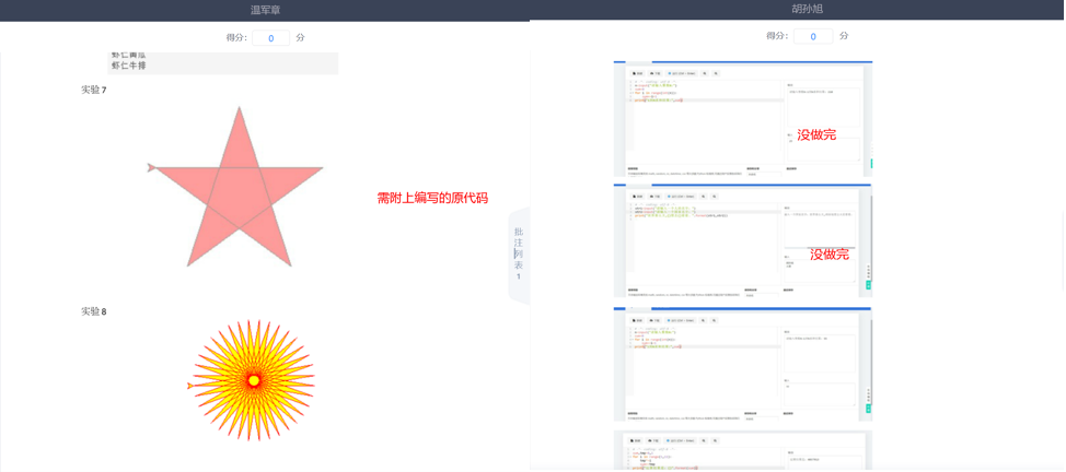 每次授课结束后,会当堂布置一些编程练习题,让学生在一定时间内完成,同学们在自己的计算机上运行产生结果后,将实验结果上传到学习通中,由教师进行线上评阅和批注,告诉学生出现的一些问题,如图9所示,从而进一步强化学习效果。