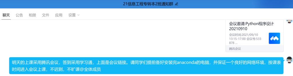 图3 向学生发布上课流程和会议链接