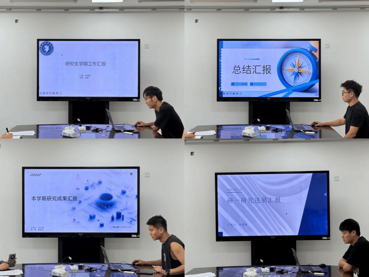 随后,8名研究生依次汇报了各自课题的研究进展,内容涵盖理论探索、实验设计及阶段性成果展示等。在了解每位同学的研究情况后,导师们结合具体问题提出了专业建议,现场交流气氛热烈。