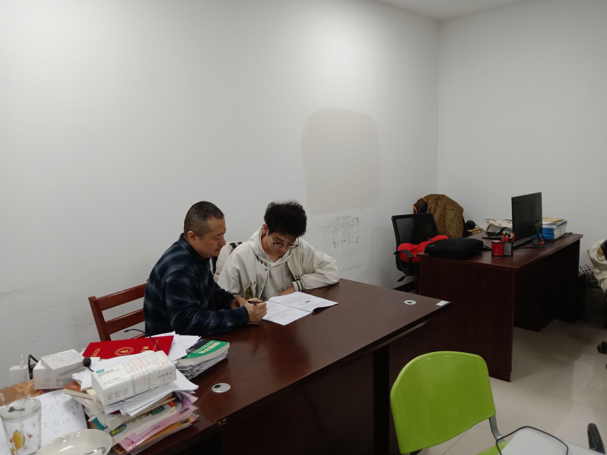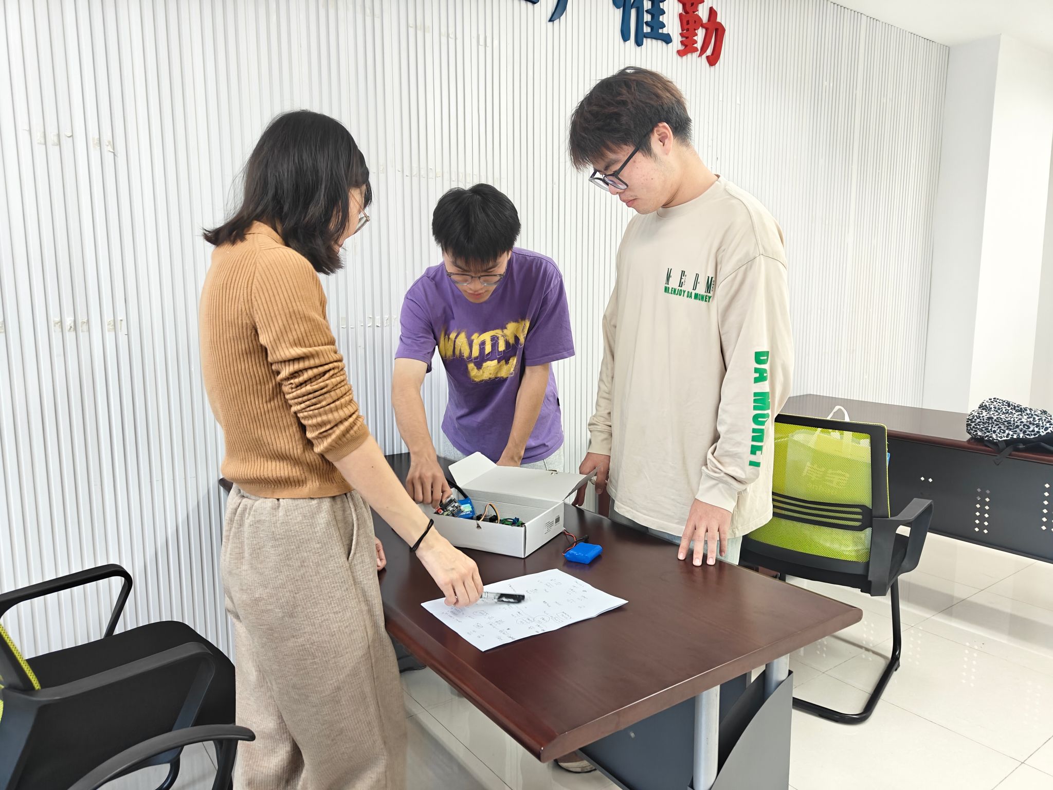 黄佳健与刘鑫宇两位同学从课题选题、资料学习、研究计划实施以及专利论文撰写等方面进行了汇报。课题组根据两位同学的实际情况,从研究方向选定、文献资料调研、实验方案设计、研究计划实施等方面进行了指导与规划。张冷老师与张鹏展老师分别介绍了各自目前承担的课题与相应的科研进展,并带领研究生熟悉微电子器件与工艺相关实验室仪器设备与电子器件的操作使用。